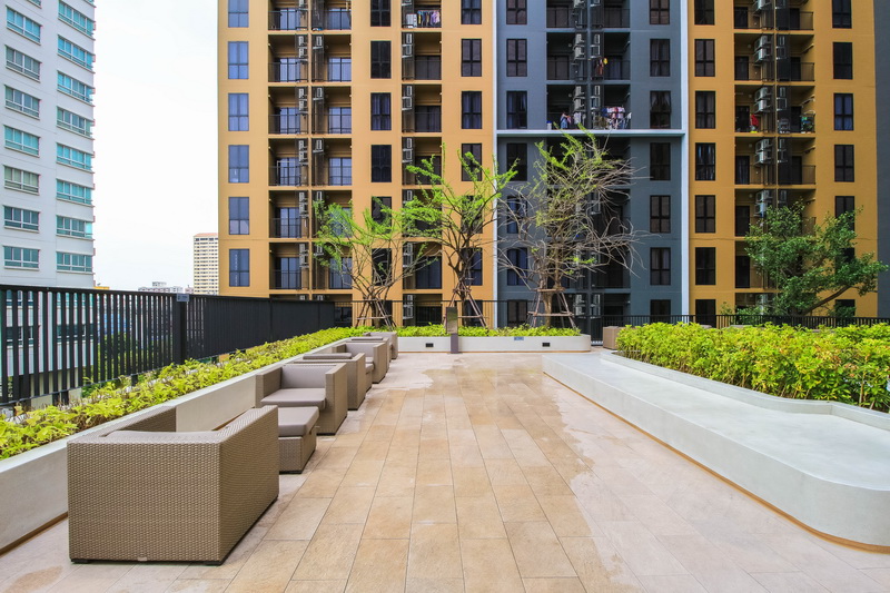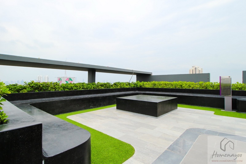 สุดท้ายคือชั้นดาดฟ้าทำเป็นสวนหย่อมทั้งหมดแบ่งเป็น BBQ, โยคะ, พื้นที่นั่งพักผ่อน เดินหรือวิ่งออกกำลังกายได้ ลิฟต์โดยสารมี 4 ตัว อัตราส่วนลิฟต์ 242 ต่อลิฟต์ 1 ตัว + ลิฟต์บริการ 1 ตัว ที่จอดรถรวมจอดซ้อนคันคิดเป็น 41% ระบบรักษาความปลอดภัยมีรปภ. CCTV และผ่านเข้าออกด้วยระบบ Key Card Access