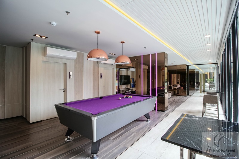 สิ่งอำนวยความสะดวก – Facilities แบ่ง 3 โซน จัดเต็มมาพอสมควร เริ่มจากชั้น 1 มีสวนหย่อม และสนามแบดมินตัน Lobby 2 ชั้น สูงกว่า 5 ม. ที่ชั้น 5 มีสระว่ายน้ำระบบเกลือขนาด 30 x 10 ม. แบ่งสระเด็ก มีสระแบบแช่ตัวขนาด 7 x 20 ม. พร้อมส่วนที่เป็น Jacuzzi มี The Club ประกอบด้วย พื้นที่ห้องนั่งเล่น ห้องอ่านหนังสือ ห้องสันทนาการ ห้องประชุม โต๊ะพูล มีฟิตเนส และห้องซาวน่า ลานโยคะ