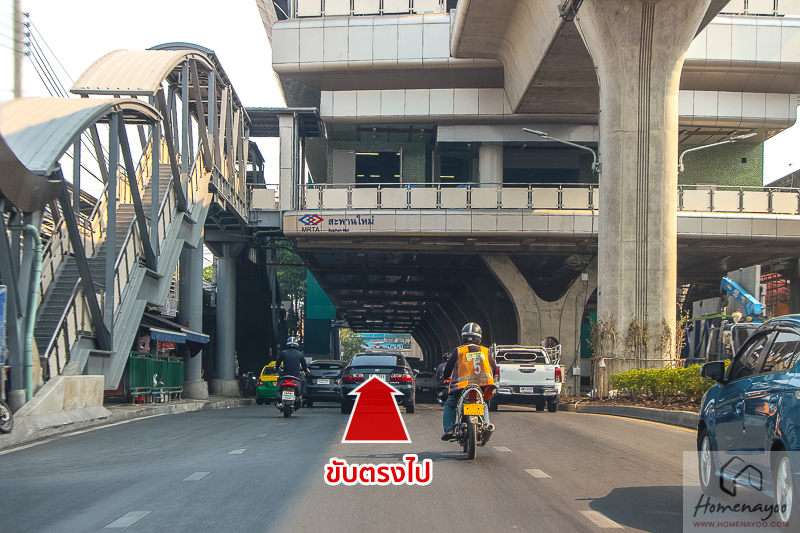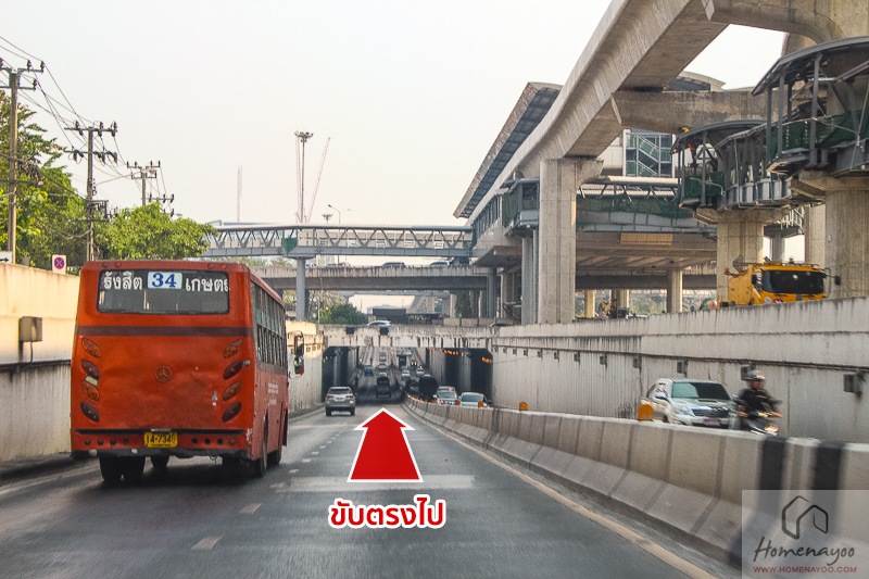 ขับตรงไปตามแนวรถไฟฟ้าฯ ไปเรื่อย ๆ ผ่านสถานีกรมป่าไม้ (N14)