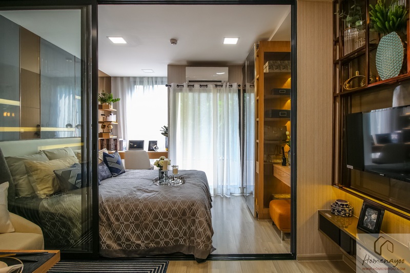 ห้องตัวอย่างที่เราจะพาไปชมกันในวันนี้ เป็นแบบ 1 Bedroom ขนาด 22.75 ตร.ม. โดยทางโครงการขายห้องพักให้แบบ Fully Furnished สิ่งที่ลูกค้าจะได้รับคือ เฟอร์นิเจอร์บิวท์อิน + เฟอร์นิเจอร์ลอยตัวมาตรฐานครบชุด, เคาน์เตอร์ครัว พร้อมซิงค์ล้างจาน, ชุดสุขภัณฑ์มาตรฐานในห้องน้ำของ Cotto พร้อมพัดลมระบายอากาศ, เครื่องปรับอากาศ Daikin ขนาด 9,000 BTU 1 เครื่อง และ ประตูห้องพักแบบ Digital Door Lock ของ COLT ค่ะ
