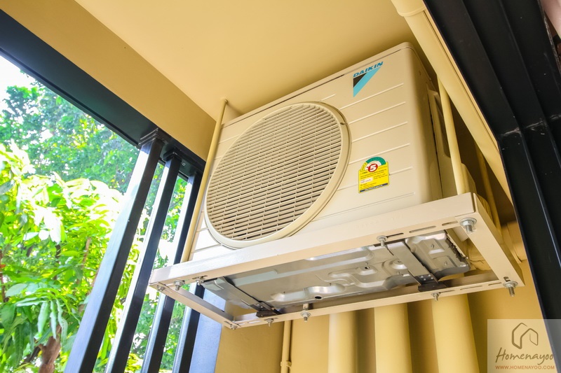 ห้องจริงลูกค้าจะได้รับฐานเตียงนอน ขนาด 5 ฟุต พร้อมเครื่องปรับอากาศ Wall Type ของ Daikin ขนาด 9,000 BTU 1 เครื่อง