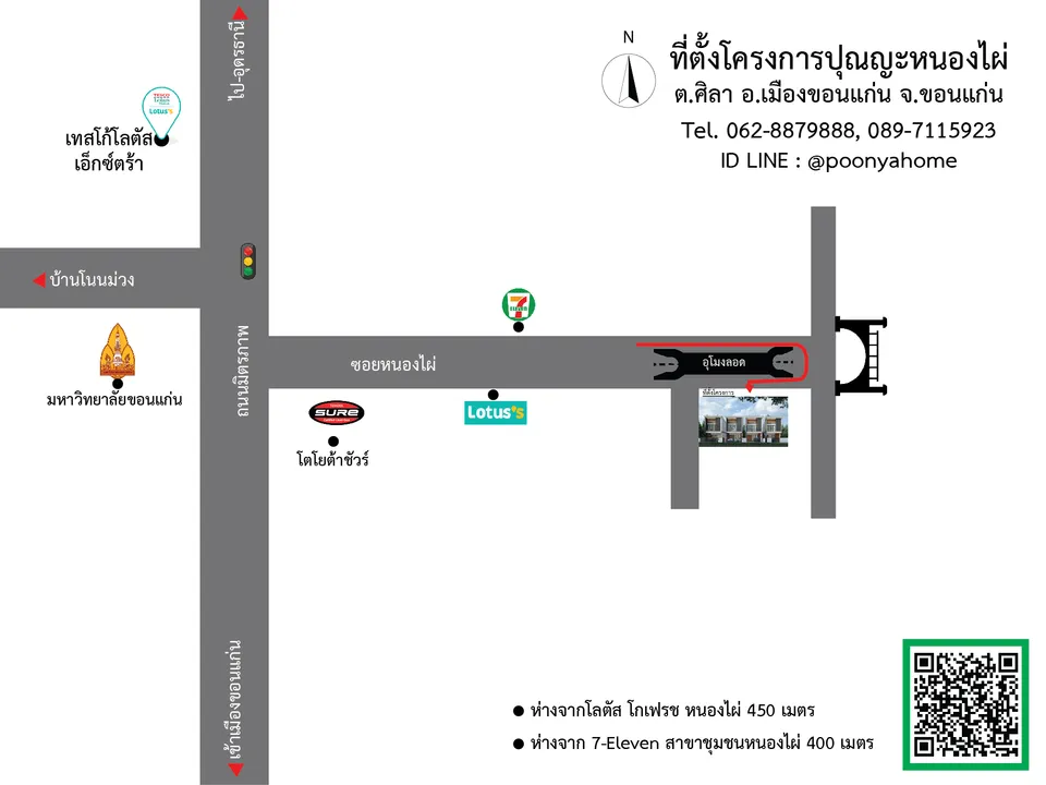 Poonya Home หนองไผ่-ขอนแก่น บ้านโครงการใหม่ จาก บ้านปุณญะโฮม โครงการตั้งอยู่ ต.ศิลา อ.เมืองขอนแก่น จ.ขอนแก่น ใกล้แหล่งชุมชน เดินทางสะดวกสบาย ใกล้ถนนมิตรภาพ, ถนนเลี่ยงเมืองขอนแก่น และสนามบินขอนแก่น และห่างจาก Lotus’s go fresh หนองไผ่ และ 7-Eleven เพียง 450 ม.*