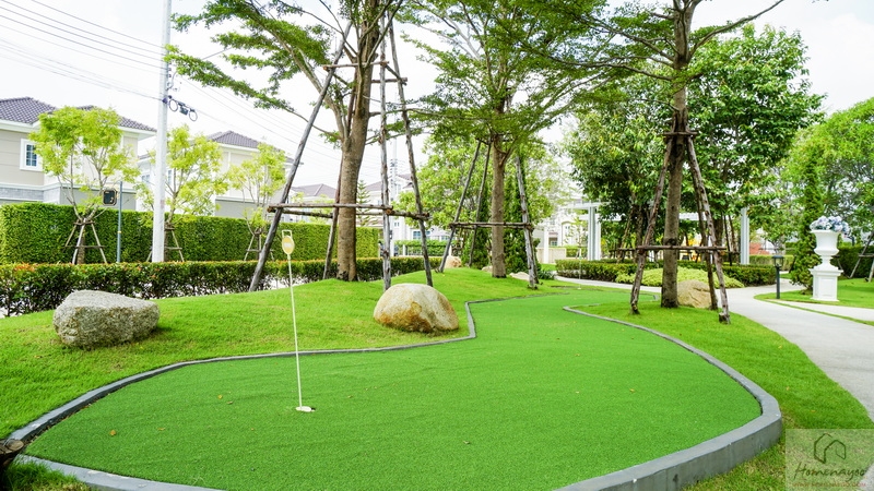 ห้องน้ำส่วนกลางแยกชาย-หญิง สวนสาธารณะขนาดใหญ่ มีสนามเด็กเล่น, จุดไดร์ฟกอล์ฟ และม้านั่งพักผ่อนในสวนหลายจุด ถนนเมนโครงการกว้าง 12 ม. และขนาด 16 ม. ในบางช่วง ส่วนถนนซอยกว้าง 9 ม. หน้าโครงการมี Main Gate ขนาดใหญ่สไตล์อังกฤษ ผสมกลิ่นอายสถาปัตยกรรมยุโรปร่วมสมัยให้ความโอ่อ่าหรูหรา