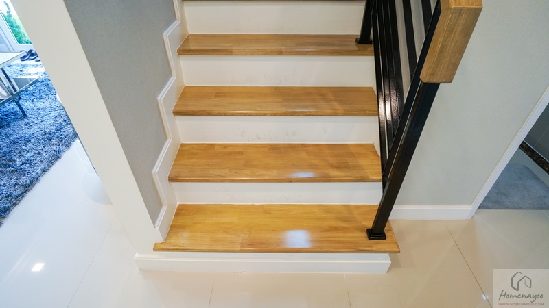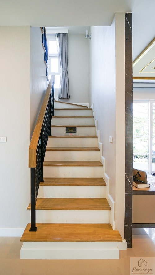 มีขั้นบันไดพร้อมราวจับเดินขึ้นไปบนชั้นลอยสวยงาม