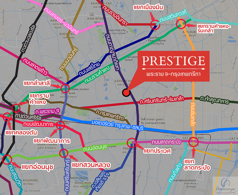 ถนนศรีนครินทร์-ร่มเก้า > ถนนเลียบกาญจนาภิเษก > Prestige พระราม 9-กรุงเทพกรีฑา