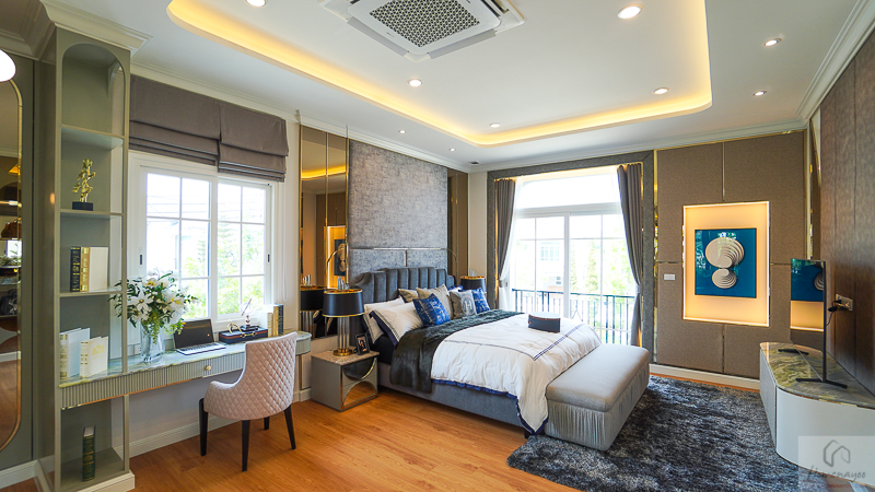 ห้อง Master Bedroom ขนาดใหญ่ พื้นที่ยาวตั้งแต่โซนหน้าบ้านถึงหลังบ้าน แบ่งฟังก์ชันการใช้งานได้ตามต้องการ