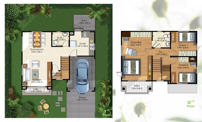 1st Floor / 2nd Floor / พื้นที่ใช้สอย 130 ตร.ม. 3 ห้องนอน 2 ห้องน้ำ