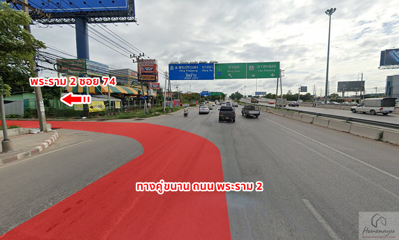 จากนั้นระยะทางอีก 215 เมตร เลี้ยวซ้ายเข้าสู่ พระราม 2 ซอย 74