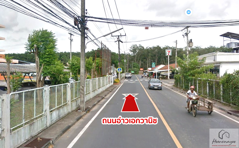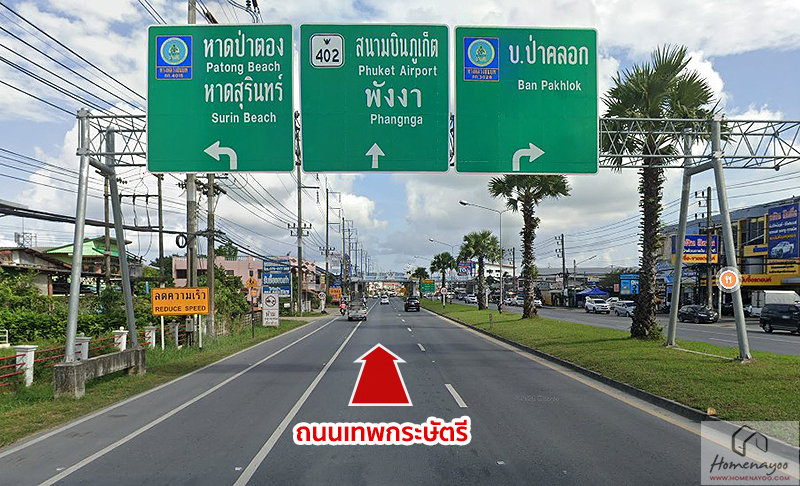 การเดินทางเริ่มจากแยกบ้านพอน ⇒ ถ.เทพกระษัตรี ⇒ สามแยก รพ.ถลาง ⇒ ถ.อ่าวเอกวานิช ถึงโครงการ พฤกษาวิลล์ 45 ภูเก็ต-ถลาง *ใกล้รพ.ถลาง