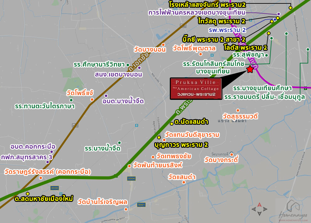 | สถานที่สำคัญใกล้เคียง | 1. คาร์ฟู พระราม 2 2. รพ.พระราม 2 3. สถานีดับเพลิงบางขุนทียน 4. การไฟฟ้าบางขุนเทียน 5. รพ.บางกอก 8 อินเตอร์ 6. สนง.เขตบางขุนเทียน 7. รพ.นครธน 8. บิ๊กซี พระราม 2 9. โฮมโปร พระราม 2 10. เซ็นทรัลพระราม 2 |