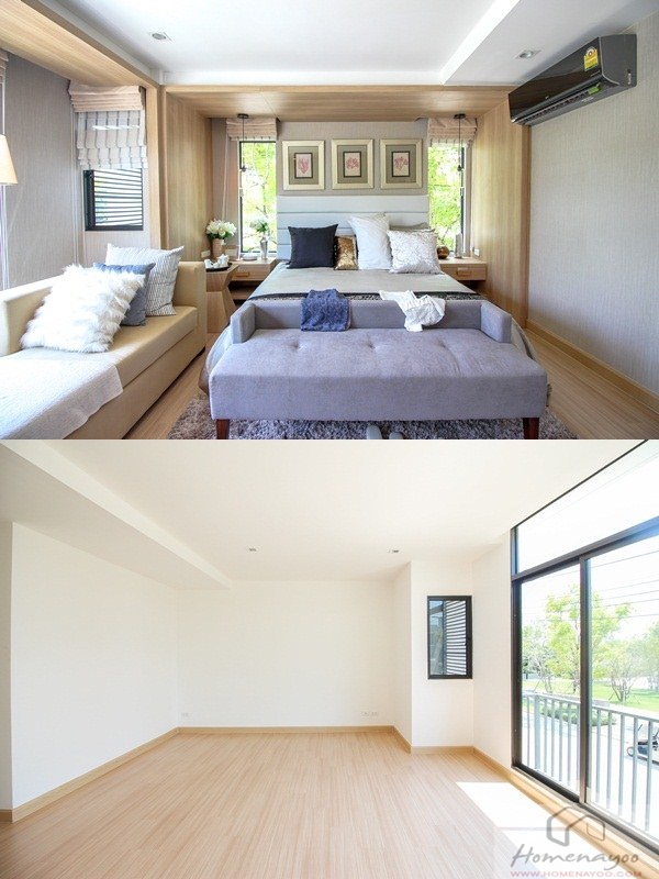 ภาพเปรียบเทียบบ้านตกแต่งกับบ้านมาตรฐานในมุมมองเดียวกัน