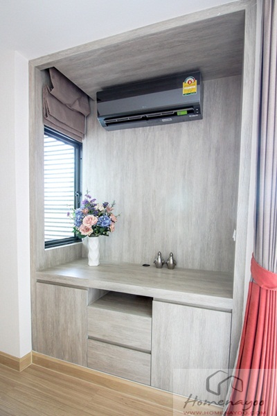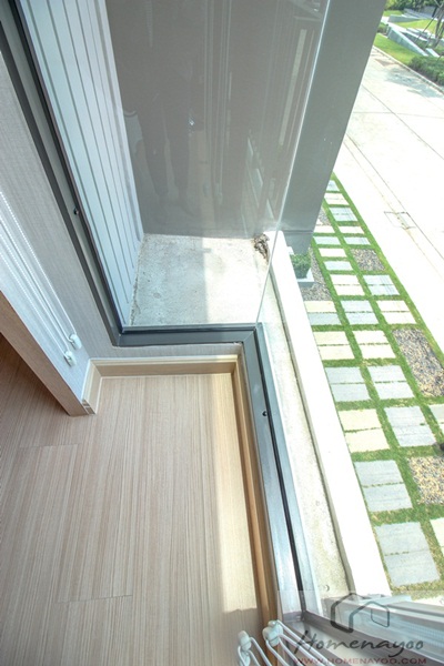 ที่ด้านข้างหน้าต่างระเบียงก็จะมีหน้าต่างบานกระทุ้งสำหรับเปิดไปยังที่วางคอยล์ร้อนแอร์ด้านนอกระเบียง ซึ่งติดตั้งแผงกันแดดเรียบร้อย แบบชั้น 2