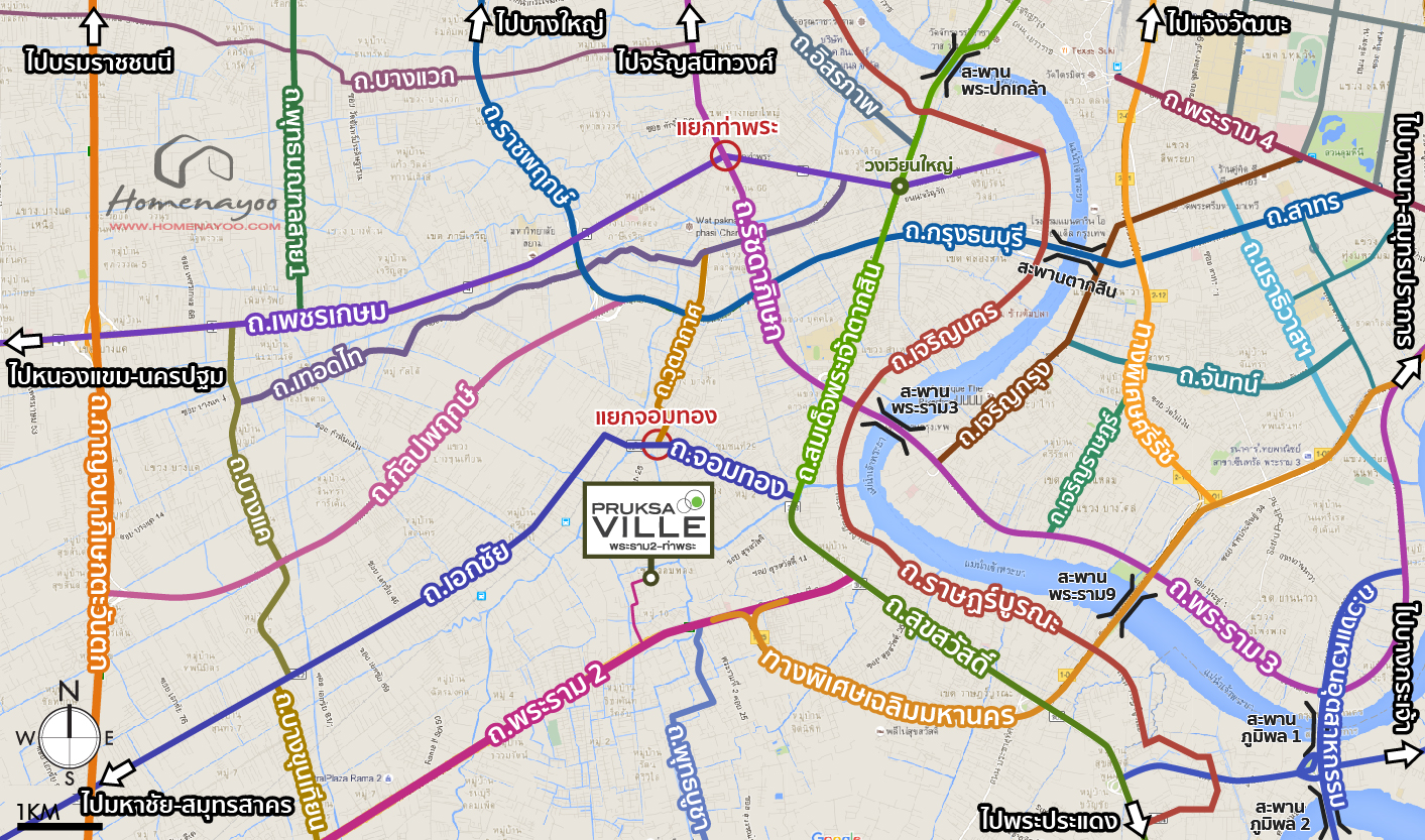 โครงการพฤกษาวิลล์ 68 พระราม2-ท่าพระ ตั้งอยู่ที่ ถ.พระราม 2 ซ.28 แยก 12 ค่ะ ซึ่งเป็นซอยที่สามารถวิ่งทะลุออกสู่ ซ.จอมทอง 19 ได้ หากดูจากแผนที่ด้านบนจะเห็นว่า โครงการได้ห้อยชื่อท่าพระเอาไว้ เพราะสามารถเดินทางสู่แยกท่าพระซึ่งเป็นแยกสำคัญแยกหนึ่งของฝั่งธนค่ะ แยกท่าพระเป็นจุดตัดระหว่าง ถ.เพชรเกษม, รัชดาภิเษก และจรัญสนิทวงศ์ เชื่อมไปยัง ถ.ราชพฤกษ์ และวงเวียนใหญ่ โดยระยะห่างจากโครงการ ถึงแยกท่าพระ ประมาณ 8 กม.(ระยะขับรถ) โดยจะเดินทางผ่านแยกสำคัญที่ใกล้โครงการที่สุดคือ แยกจอมทอง ผ่าน ถ.วุฒากาศ