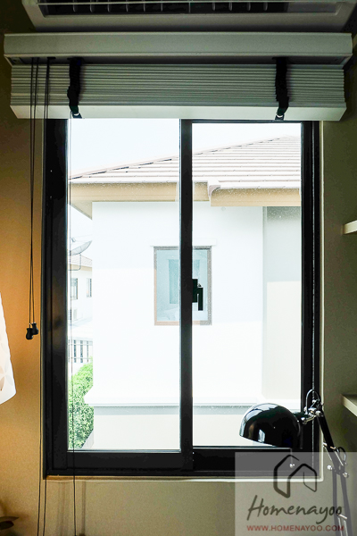 ห้องนี้มีช่องแสงมาให้ 2 จุด เป็นหน้าต่างบานเลื่อนเดี่ยว ซึ่งอย่างที่เคยบอกว่าบ้านตัวอย่างหลังนี้เป็นบ้านแปลงมุมเพราะฉะนั้นจึงได้ช่องแสงมามากกว่าบ้านแปลงมาตรฐาน สำหรับห้องนี้ถ้าเป็นแปลงมาตรฐานจะมีหน้าต่างแค่บานเดียวคือบานหลังบ้านค่ะ