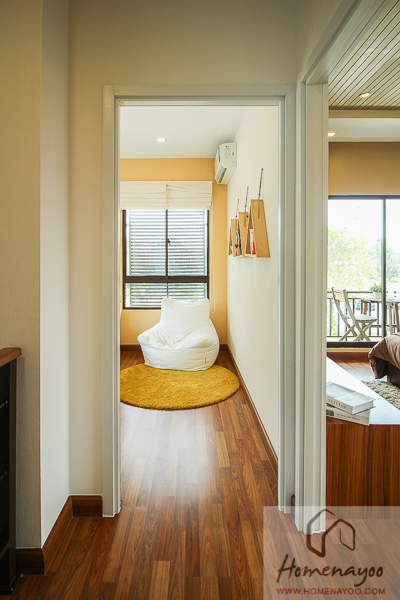 พื้นห้องก็ยังคงเป็นพื้นลามิเนตที่ปูยาวมาจากโถงบันได ไม่มีตัวจบกั้นห้อง