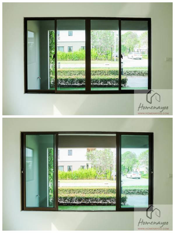 หน้าต่างบานเลื่อนคู่เป็นบานเลื่อนเปิดออกด้านข้างแบบนี้ค่ะ