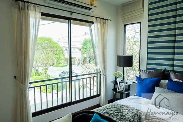 ฝั่งห้องนอนนี้จะมีช่องแสง 2 จุด คือหน้าต่างบานเลื่อนบานใหญ่ฝั่งหน้าบ้าน และหน้าต่างบานฟิกซ์ฝั่งข้างบ้านซึ่งแปลงมาตรฐานจะได้แค่หน้าต่างบานใหญ่ที่อยู่หน้าบ้านเท่านั้นนะคะ