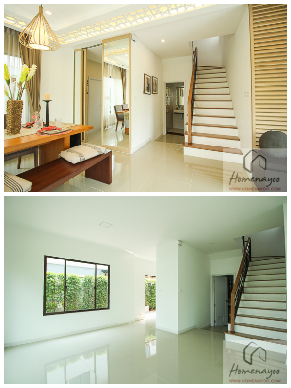 ส่วนการวางผังของบ้านจะขอแยกเป็นส่วนของทาวน์โฮมและบ้านแฝด โดยตัวทาวน์โฮมทั้ง 2 แบบนั้นจะมีการวางผังคล้ายๆกัน ต่างกันที่จำนวนที่จอดรถหน้าบ้านเท่านั้นค่ะ ส่วนฟังก์ชั่นการใช้งานครบเหมาะสมกับพื้นที่ใช้สอยที่ได้มา และค่อนข้างยืดหยุ่นกับการปรับการใช้งานตามแต่ผู้อยู่อาศัย ตัวครัวก็แยกมาให้ชัดเจนสามารถกั้นห้องเป็นครัวปิดได้ง่ายๆ ไม่มีมุมไหนของบ้านที่ให้ความรู้สึกติดขัดใช้งานลำบาก ส่วนแบบบ้านแฝดก็จะมีการวางผังคล้ายๆกัน ฟังก์ชั่นด้านในก็ครบถ้วนจะต่างกันก็ตรงที่ได้พื้นที่เหลือข้างเพิ่มมากขึ้นและได้ความเป็นส่วนตัวมากขึ้นเพราะไม่ต้องใช้ผนังร่วมกับเพื่อนบ้านค่ะ