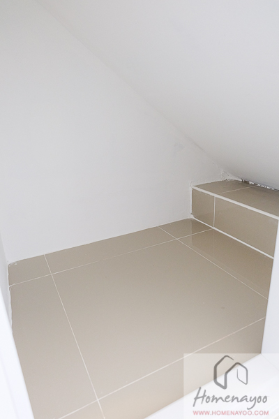ขนาดห้องเก็บของนี้จะเป็นห้องที่ใช้พื้นที่ใต้บันไดที่ยังเหลืออยู่ ก็พอใช้เก็บพวกน้ำยาทำความสะอาดหรือสบู่แชมพูที่เราซื้อมาเก็บไว้ได้ แต่คงเตี้ยไปสำหรับการเก็บไม้ถูพื้นหรือไม้กวาดค่ะ