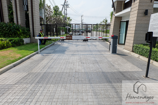 ระบบรักษาความปลอดภัย Double Security Gate คือมีประตูรั้วไม้กระดกกั้นและมีประตูรั้วใหญ่ที่เป็นเหล็กโปร่งกั้นให้อีกชั้นหนึ่งค่ะ โดยการคัดกรองลูกบ้านจะใช้ Access Card แบบระยะใกล้ คือต้องยื่นบัตรแตะผ่านรั้วไม้กระดก และมีกล้อง CCTV 2 จุด ส่องหน้าคนขับและส่องป้ายทะเบียน ส่วน Visitor จะต้องแลกบัตรกับพี่ รปภ.ก่อนนะคะ