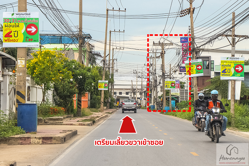 ขับตรงไปตามป้ายบอกทางเรื่อย ๆ พอเราเห็นป้ายลูกศรเลี้ยวขวาให้ชะลอแล้วเลี้ยวเข้าซอยหน้าค่ะ