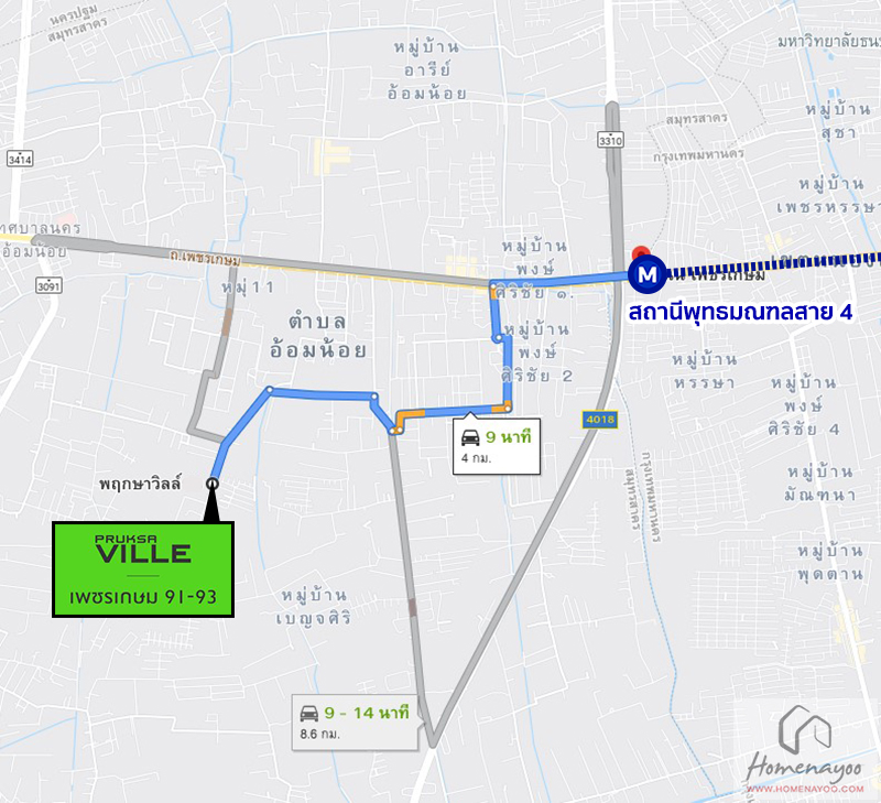 สวัสดีค่ะ เพื่อน ๆ ชาว Homenayoo ทุกคน วันนี้เราจะพาไปชมโครงการทาวน์โฮมสไตล์ยุโรปพร้อมอยู่ในย่านกระทุ่มแบน-สมุทรสาคร กับโครงการ พฤกษาวิลล์ 99 เพชรเกษม 91-93 โครงการจาก บมจ.พฤกษา เรียลเอสเตท ตั้งอยู่ในซอยเพชรเกษม 93 ต.อ้อมน้อย อ.กระทุ่มแบน จ.สมุทรสาคร
