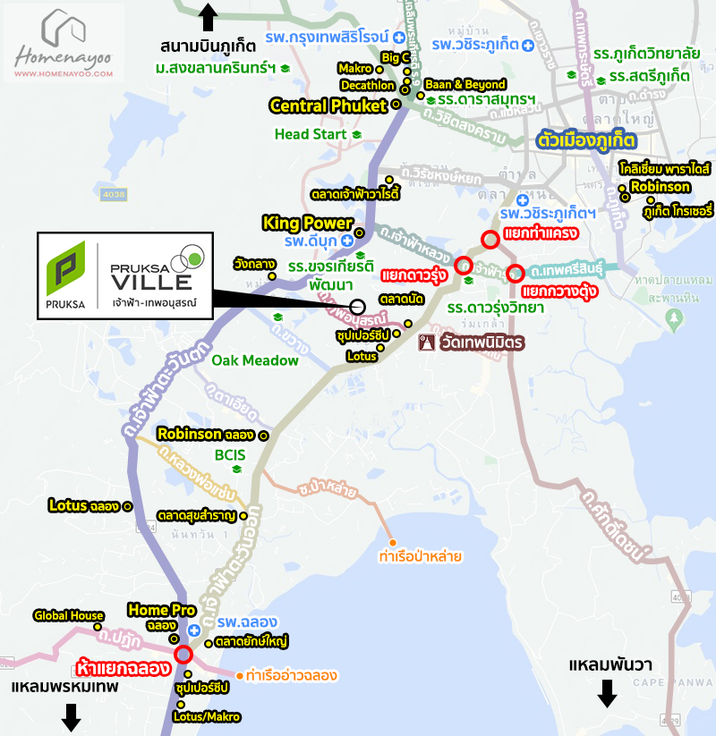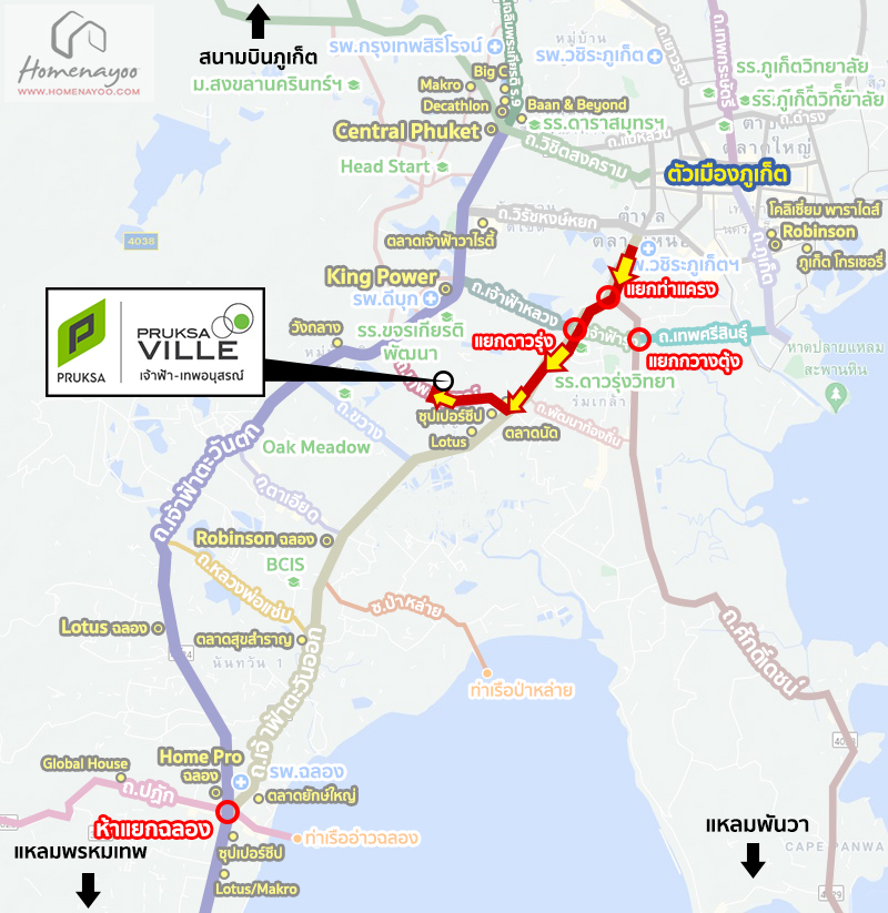 ขับตรงไปตามทางเรื่อย ๆ ผ่านโครงการพนาสนธิ์ ซิตี้และศุภาลัยวิลล์ ภูเก็ต