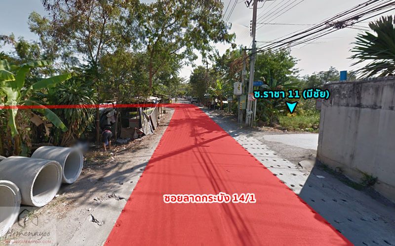 จากนั้นวิ่งตรงตาม ซอยลาดกระบัง 14/1 ระยะทางอีก 1 กิโลเมตร ผ่านขวามือ ซอยราชา 11 (มีชัย)