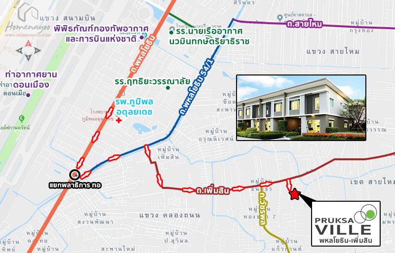 การเดินทาง ผมเริ่มจาก ถนนพหลโยธิน มุ่งหน้าไปทาง ตะวันตกเฉียงใต้ (หน้าโรงพยาบาลภูมิพลอดุลยเดช) ⇒ เลี้ยวซ้ายเข้าสู่ ถนนพหลโยธิน 54/1 ⇒ เลี้ยวขวาเข้าสู่ ถนนเพิ่มสิน ⇒ ทาวน์โฮม พฤกษาวิลล์ พหลโยธิน-เพิ่มสิน *โครงการอยู่ระหว่าง ซอยเพิ่มสิน 32-34