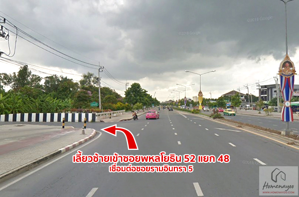 จากนั้นเราจะเลี้ยวเข้า ซ.พหลโยธิน 52 แยก 48 ซึ่งเชื่อมต่อกับ ซ.รามอินทรา 5 หรือ ซ.สุขาภิบาล 1 ค่ะ