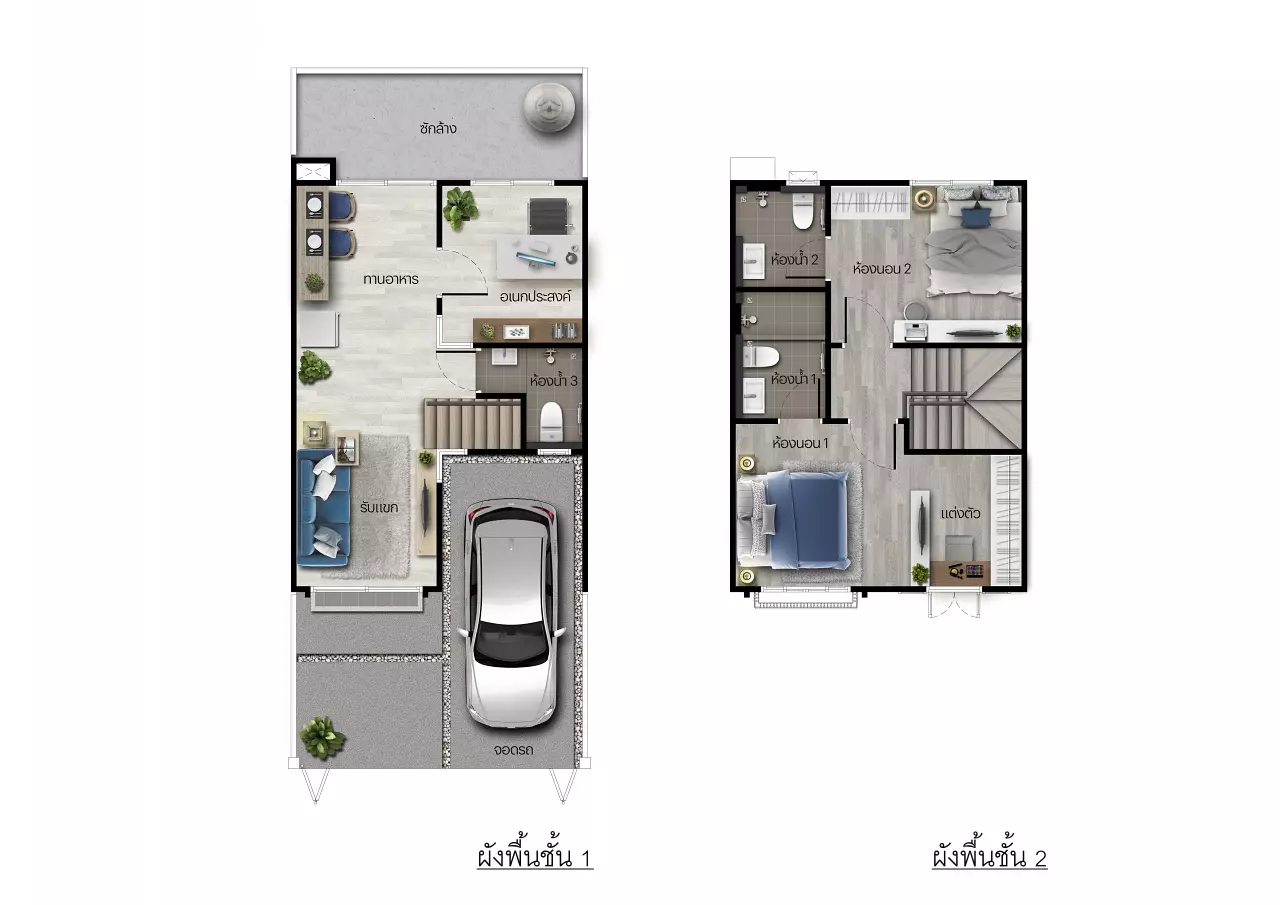 แบบบ้าน Corsica (คอร์ซิก้า) ทาวน์โฮม 2 ชั้น ที่ดินบ้านเริ่มต้น 17.88 ตร.ว. พื้นที่ใช้สอย 118 ตร.ม. ฟังก์ชันบ้าน 3 ห้องนอน, 1 ห้องอเนกประสงค์, 3 ห้องน้ำ พร้อม 2 ที่จอดรถ ราคาเริ่มต้น 3.59 ล้าน*