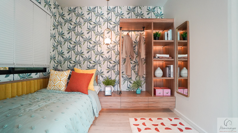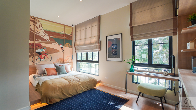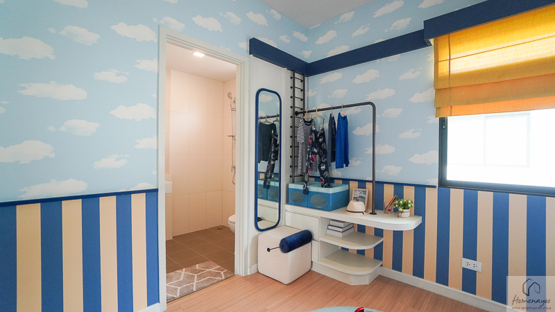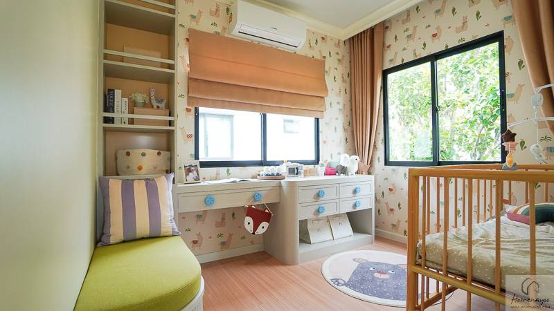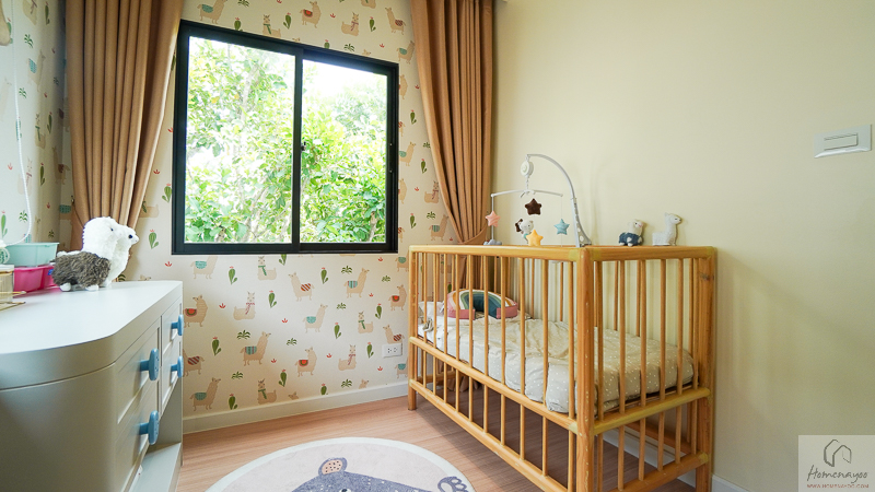ในห้องจะสามารถวางเตียงนอนเด็กเล็ก และตู้เสื้อผ้า ตู้เก็บของใช้ไว้อีกฝั่งได้
