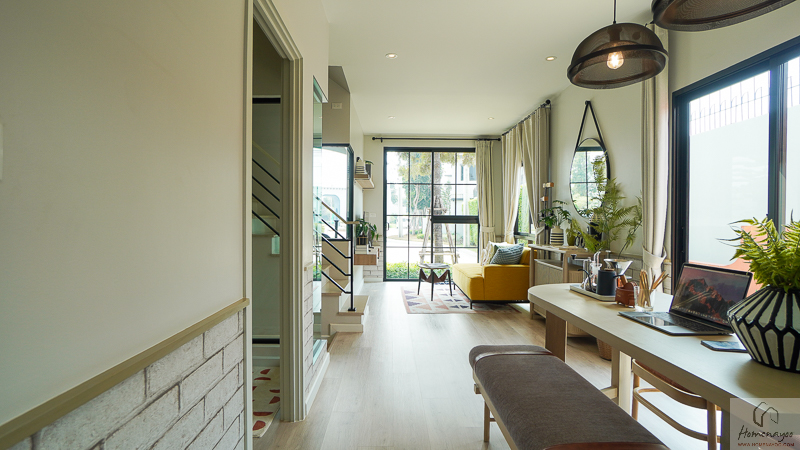 บรรยากาศภาพรวมภายในบ้านชั้นล่าง จะดูโปร่งและกว้างมากขึ้นจากหลังแรก และมีการแบ่ง Zoning ต่าง ๆ ไว้ได้ลงตัวมากขึ้น รแงรับการมีสมาชิกในบ้าน 3-4 คนได้อย่างลงตัว