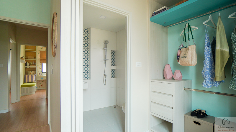 ถัดลงมาจะต่อเนื่องเป็นมุมแต่งตัว ซึ่งเชื่อมเข้าสู่ห้องน้ำในตัวได้โดยตรง ทำให้การใช้งานในชีวิตประจำวันสะดวกและเป็นสัดส่วนมากขึ้น