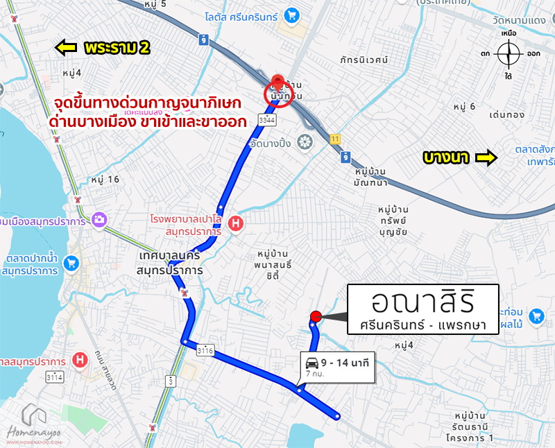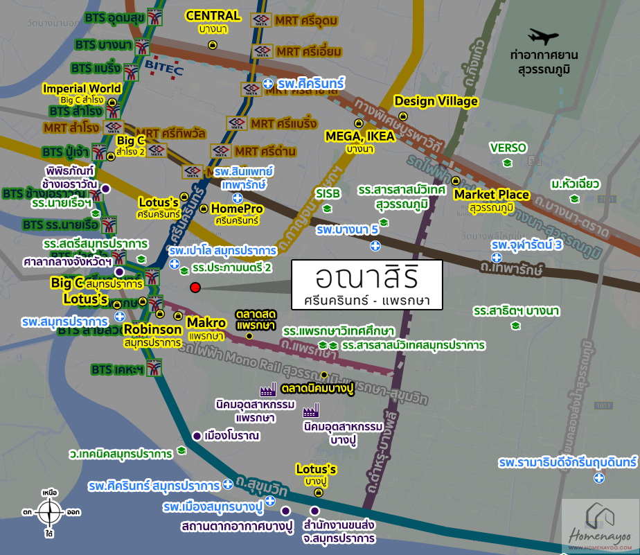 ⇒ ทำเลที่ตั้งโครงการ : Anasiri ศรีนครินทร์-แพรกษา ตั้งอยู่บนโซนศรีนครินทร์-แพรกษา โดยเข้าจากถนนแพรกษามาประมาณ 1 กม.* ซึ่งเป็นทำเลที่หลายคนมองว่า “กำลังพอดี” สำหรับการอยู่อาศัย เพราะให้ทั้งความสะดวกและความสงบในเวลาเดียวกัน รอบ ๆ เป็นย่านบ้านพักอาศัยดั้งเดิม สลับกับร้านค้า ตลาด โรงเรียน และสิ่งอำนวยความสะดวกครบครัน ทำให้ใช้ชีวิตประจำวันได้ง่ายโดยไม่ต้องเข้าเมืองบ่อย ๆ