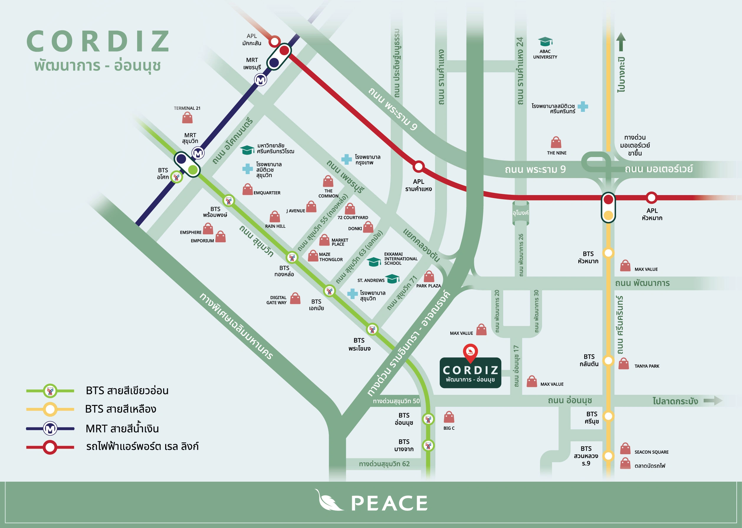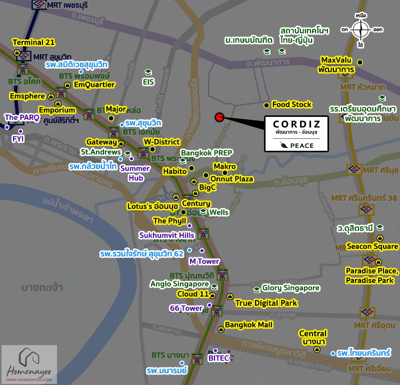 ⇒ ทำเลที่ตั้งโครงการ : CORDIZ พัฒนาการ-อ่อนนุช ตั้งอยู่บนทำเลพัฒนาการ-อ่อนนุช ซึ่งถือเป็นโซนใกล้เมืองที่ความอุดมสมบูรณ์สูงและใช้ชีวิตได้สะดวกครบทุกด้าน รายล้อมด้วยศูนย์การค้า ร้านอาหาร ร้านสะดวกซื้อ สถานศึกษา โรงพยาบาล และแหล่งงานขนาดใหญ่ ทำให้ตอบโจทย์ทั้งการอยู่อาศัยและการทำงานในชีวิตประจำวันได้อย่างลงตัว