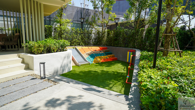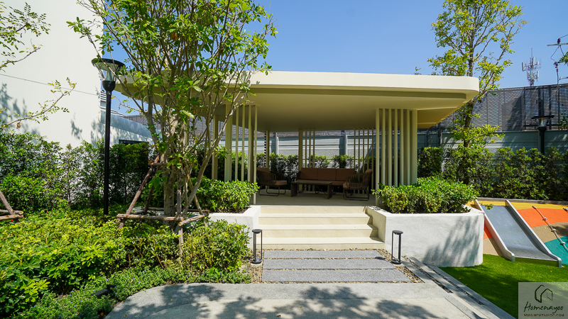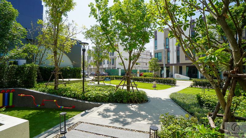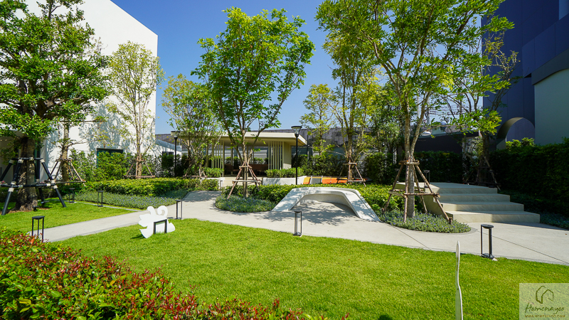พร้อมพื้นที่พักผ่อนและสวนส่วนกลางขนาดพอเหมาะ ที่จัดวางอยู่ด้านหน้าโครงการ ภายในมีครบฟังก์ชัน ทั้งที่นั่งพัผ่อน ทางเดินในสวน และสนามเด็กเล่น รวมถึงพื้นที่สีเขียวที่แทรกตัวอยู่รอบ ๆ ช่วยเพิ่มบรรยากาศความร่มรื่นและความน่าอยู่ในทุกวัน