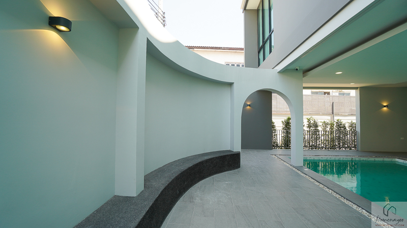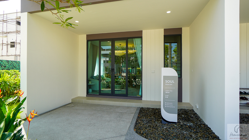 ดีไซน์ภายนอกบ้านมาในสไตล์เดียวกับแบบบ้าน SOUL ที่เน้นความเรียบหรูดูทันสมัย โดดเด่นด้วยเส้นสายทรงโค้งที่ช่วยให้ภาพรวมของอาคารดูนุ่มนวล ไม่แข็งกระด้าง และกลมกลืนกับบรรยากาศโดยรอบ เลือกใช้โทนสีเทาอบอุ่น สบายตา และยังคงความสวยงามได้ยาวนานไม่ตกยุคง่าย