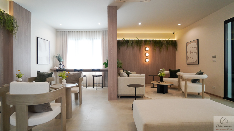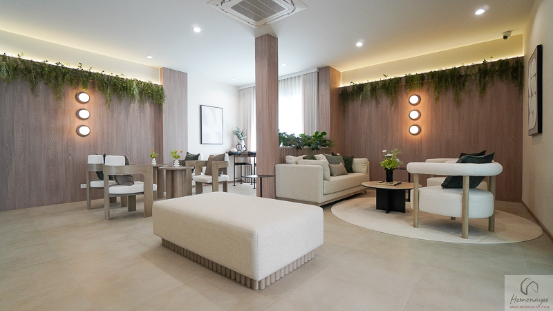 พื้นที่ส่วนกลางภายในโครงการจัดมาอย่างครบครัน บรรยากาศดูทันสมัยและผ่อนคลายไปพร้อมกัน โดยมี Clubhouse ดีไซน์เส้นสายโค้งที่ดูนุ่มนวล เชื่อมโยงความรู้สึกใกล้ชิดธรรมชาติ พร้อมสระว่ายน้ำระบบเกลือ แยกสระเด็กและผู้ใหญ่