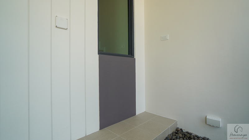 ถัดออกไปจะเป็นพื้นที่ซักล้างหรือห้องครัวด้านหลังบ้าน บ้านจริงจะกั้นด้วยประตูกระจกบานเลื่อนขนาดใหญ่ แยกโซนใช้งานเป็นสัดส่วน