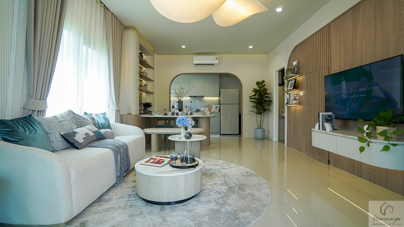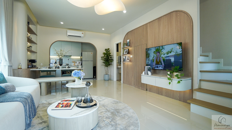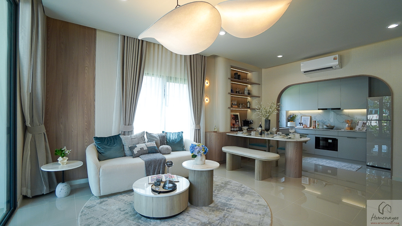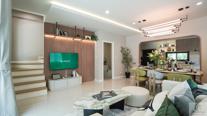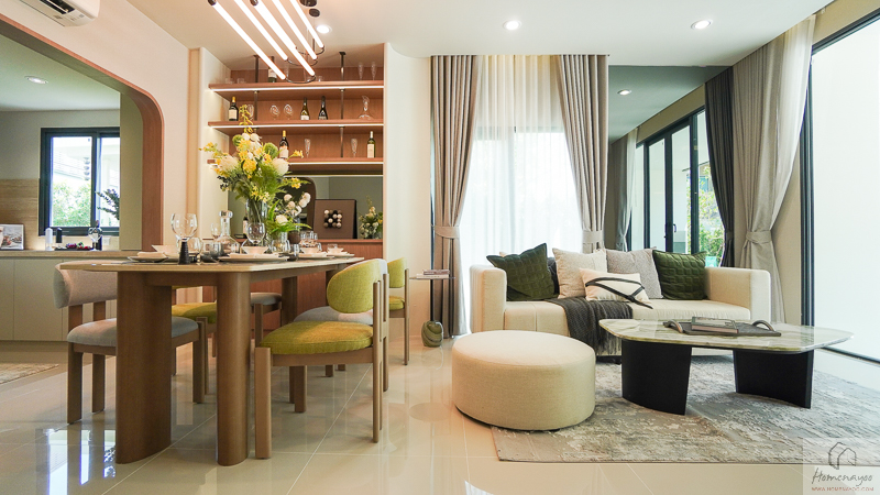 ภายในบ้านให้พื้นที่ใช้สอยค่อนข้างกว้าง ฟังก์ชันครบ รองรับทั้งครอบครัวเริ่มต้น ครอบครัวขยาย หรือคนรุ่นใหม่ที่ต้องการพื้นที่ใช้ชีวิตมากกว่าคอนโด พื้นที่ส่วนกลางภายในบ้านออกแบบเป็น Living & Dining แบบ Open Plan เชื่อมต่อกันอย่างลงตัว ห้องนอนมีขนาดใช้งานได้จริง พร้อมพื้นที่อเนกประสงค์ในบ้าน Size ใหญ่ ที่ปรับเปลี่ยนการใช้งานได้ตามไลฟ์สไตล์