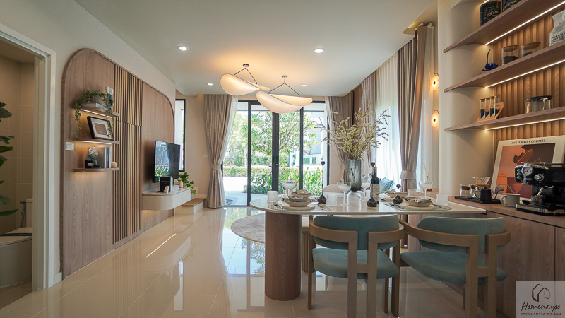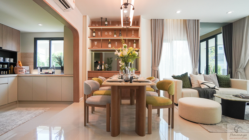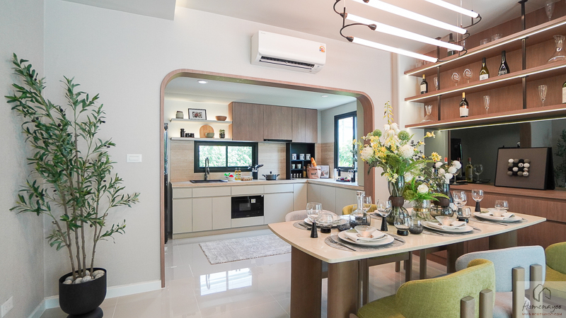 ถัดไปด้านหลังจะเป็น Dining Area เชื่อมต่อกับห้องครัวหลังบ้านได้ใกล้ ๆ