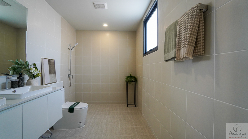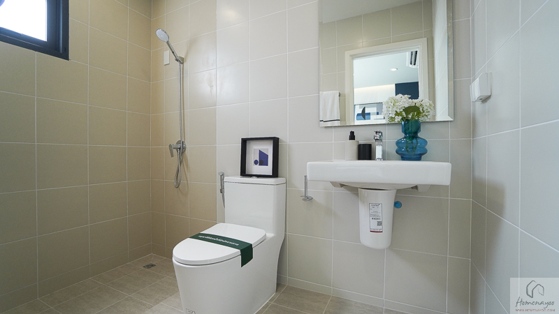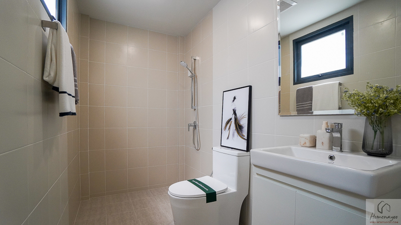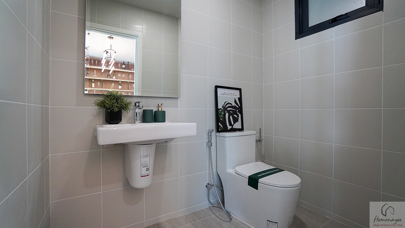 ห้องน้ำในตัวของห้องนอน 3 จะได้รูปแบบการจัดวาง การตกแต่ง และสุขภัณฑ์มาตรฐานเหมือนกับห้องน้ำของห้องนอน 2 ทุกประการค่ะ