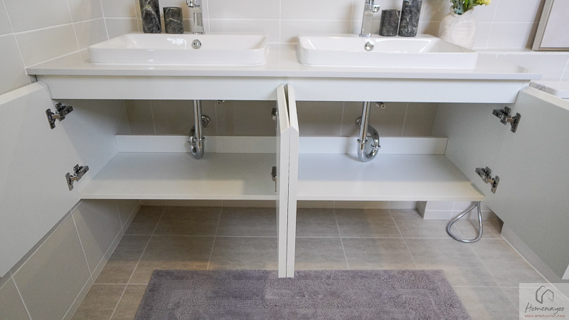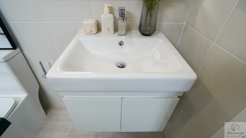 ห้องนี้ได้เคาน์เตอร์อ่างล้างมือแบบ His & Her พร้อมตู้เก็บของใต้อ่างส่วนตัวทั้งสองด้าน ช่วยจัดระเบียบของใช้ได้เรียบร้อย ใช้งานพร้อมกันได้สบาย โดยเฉพาะช่วงเช้าเร่งรีบ