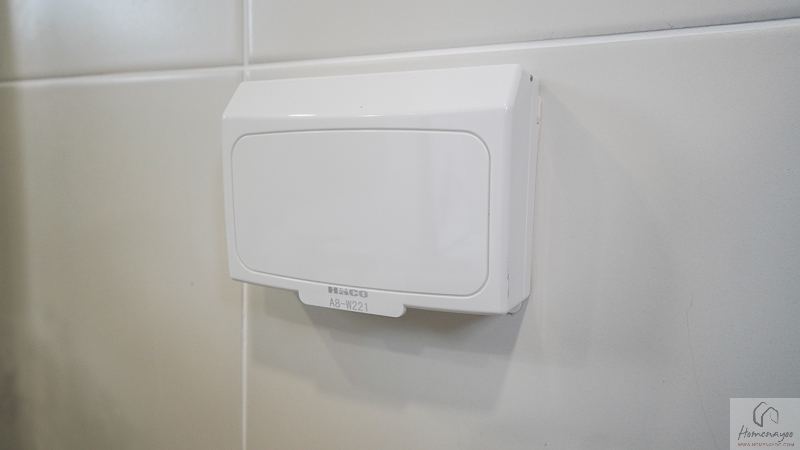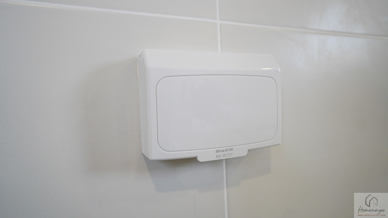 ผนังข้างอ่างล้างมือ ติดเต้าเสียบปลั๊กไฟพร้อมฝาครอบกันน้ำให้ 1 จุด