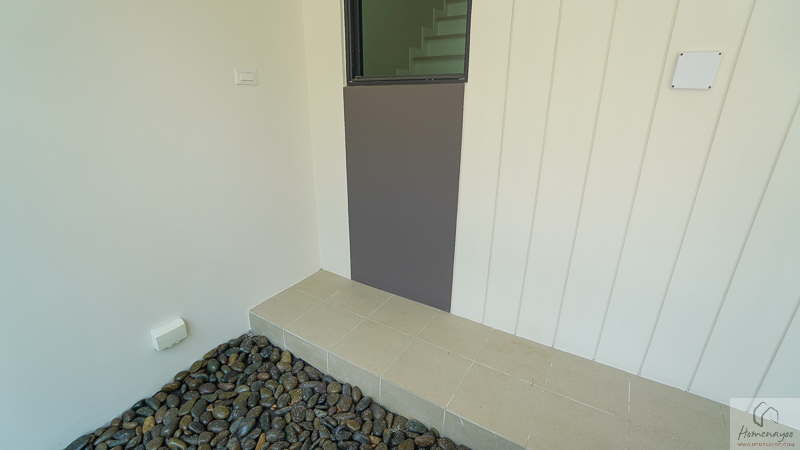 ส่วนพื้นที่ครัวและซักล้างจะอยู่โซนหลังบ้าน โดยโครงการลงเสาเข็มรองรับการต่อเติมไว้เรียบร้อย ช่วยให้สามารถปรับขยายพื้นที่ครัวไทยหรือทำหลังคาคลุมเพิ่มได้อย่างมั่นใจในระยะยาว