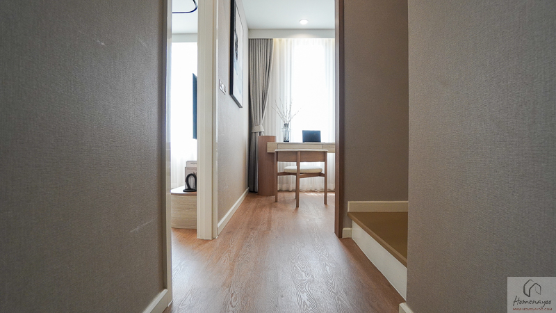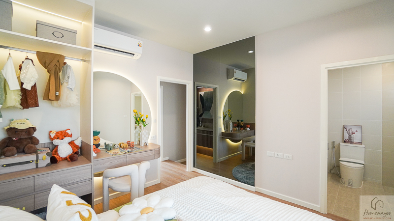 ภายในได้พื้นที่ค่อนข้างกว้าง รองรับการวางโต๊ะเครื่องแป้ง 1 ที่นั่ง พร้อมจัดตู้เสื้อผ้าแบ่งขนาดใหญ่ไว้เต็มพื้นที่อีกฝั่งได้เลย