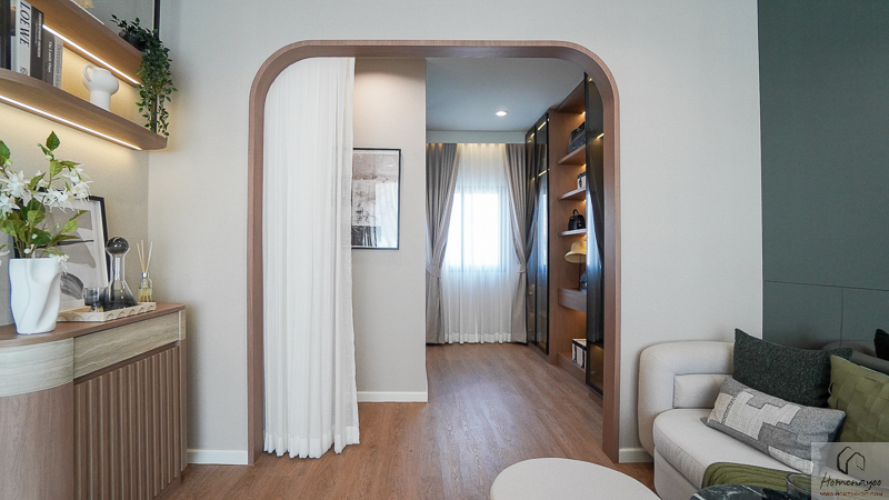 กลับไปที่โถงบ้านตรงบันได ด้านซ้ายจะเป็นทางเข้าสู่ Master Bedroom ฝั่งหน้าบ้านค่ะ