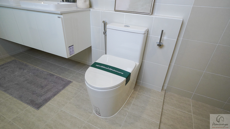 ติดกันได้เป็นโถสุขภัณฑ์ระบบ Dual Flush พร้อมอุปกรณ์ประกอบ และมี Low-Wall ด้านหลังไว้สำหรับวางของใช้เล็ก ๆ น้อย ๆ ได้