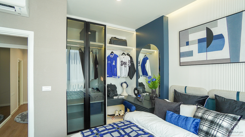 อีกฝั่งของห้องเป็นพื้นที่ Walk-in Closet ที่เชื่อมกับห้องน้ำในตัวได้สะดวก